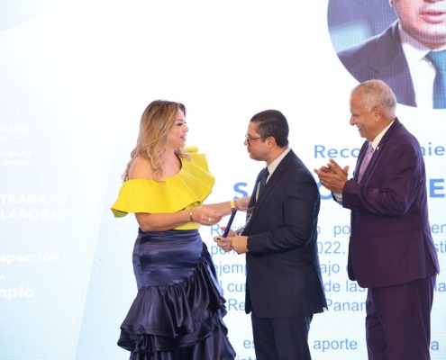 Panamá, 20 de octubre de 2023. Un valioso reconocimiento a su trayectoria como viceministro de Trabajo y Desarrollo Laboral durante el periodo 2019-2022, recibió el ministro de Gobierno, Roger Tejada Bryden, durante la premiación de gala de las buenas prácticas laborales a través de Yo Sí Cumplo, que desarrolla el Ministerio de Trabajo y Bienestar Laboral (Mitradel)