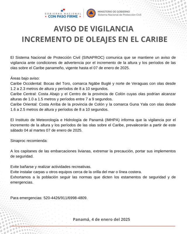 Noticias 2024 Noticias 2023 Noticias 2022 Sala de PrensaAviso de vigilancia «Incremento de oleajes en el Caribe panameño»4 enero, 2025Noticias 2025Leer másPrivados de libertad aportan a la educación con mano de obra en mantenimiento y limpieza de escuelas4 enero, 2025destacadas,Noticias 2025Leer másPrimer Gabinete de Directores 20254 enero, 2025Noticias 2025Leer másCustodios decomisan arma de fuego en La Nueva Joya4 enero, 2025Noticias 2025Leer másAutoridades del Mingob participan de la instalación de la segunda legislatura del primer periodo de sesiones ordinarias2 enero, 2025destacadas,Noticias 2025Leer másNuevos graduados de premedia y media en Nueva Esperanza de Colón2 enero, 2025destacadas,Noticias 2025Leer másMás de 16 mil personas visitan puntos de cobertura sin registro de emergencias2 enero, 2025destacadas,Noticias 2025Leer más«‹6566676869