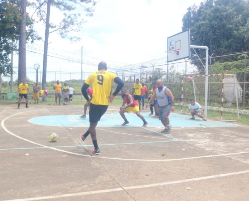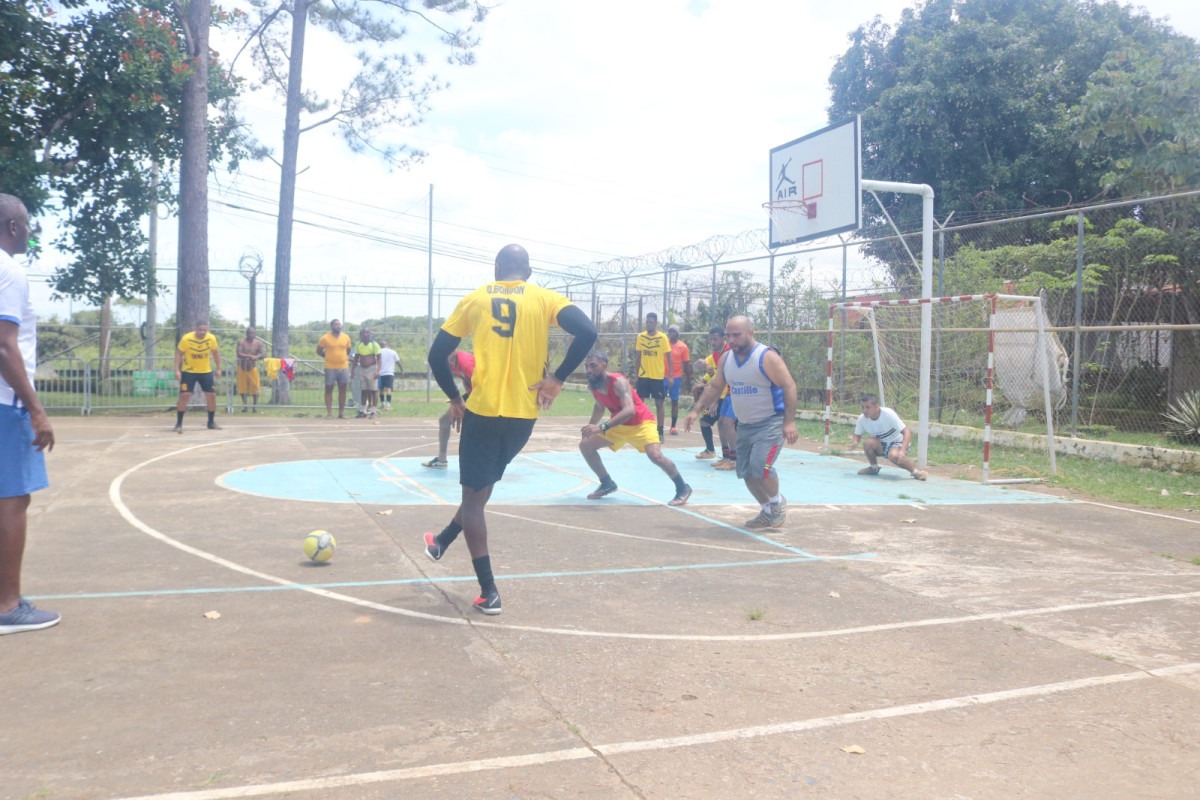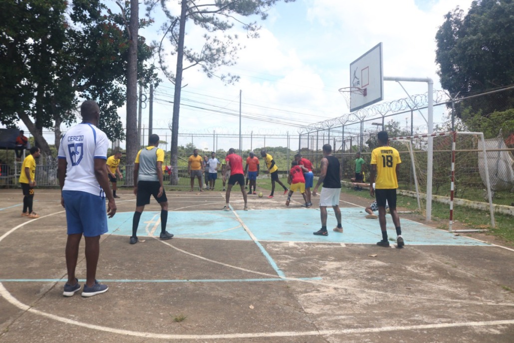 Panamá, 25 de julio de 2024. – El grito del gol retumbó en la cancha de juego del centro penitenciario La Joyita con la liga de fulbito para privados de libertad de más de 40 años, un momento de sano esparcimiento que impulsa el Ministerio de Gobierno (Mingob), mediante la Dirección General del Sistema Penitenciario (DGSP) en las instalaciones penitenciarias del país.