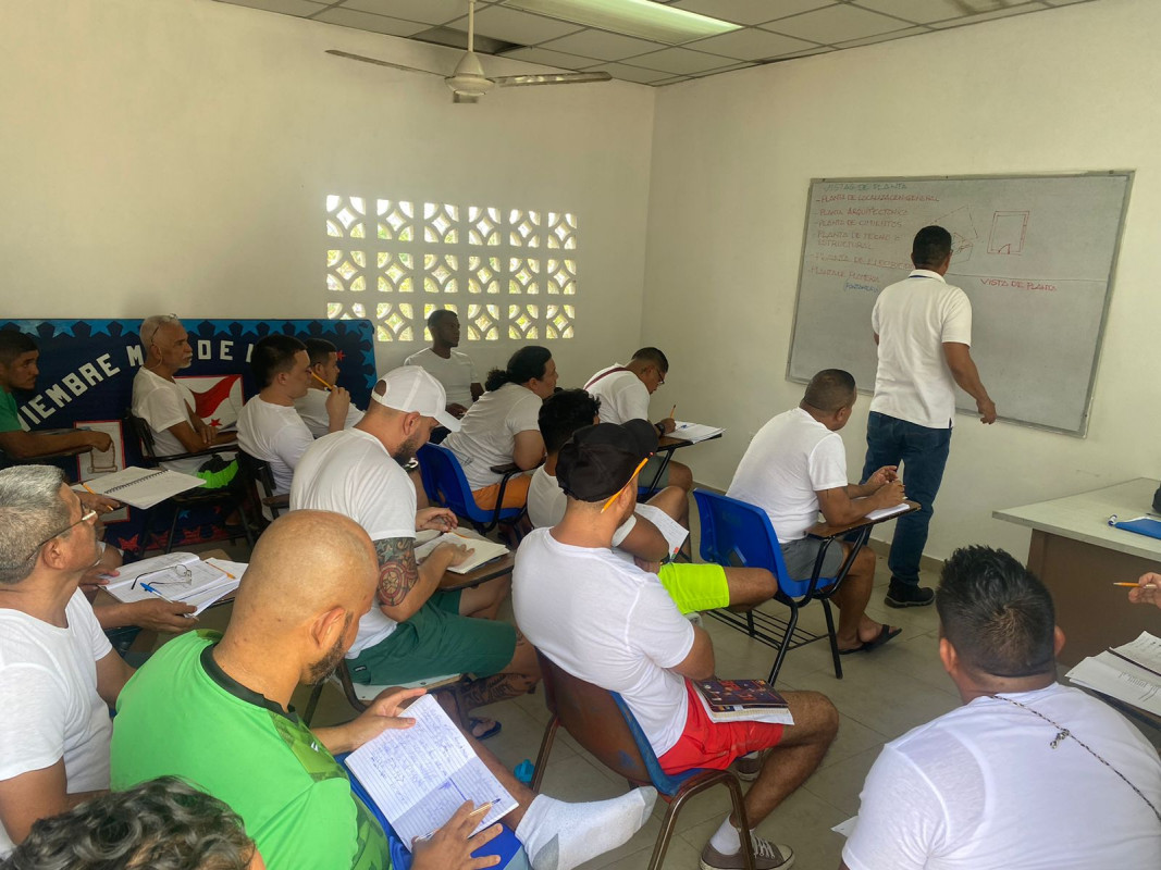 Panamá, 16 de marzo de 2023. – Con la participación de veinte privados de libertad del centro de Detención de Tinajitas, inició el curso sobre Interpretación de planos de construcción por parte del Instituto Nacional de Formación Profesional y Capacitación para el Desarrollo Humano (Inadeh), actividad que forma parte de los programas de resocialización que desarrolla la Dirección General del Sistema Penitenciario del Ministerio de Gobierno (Mingob).