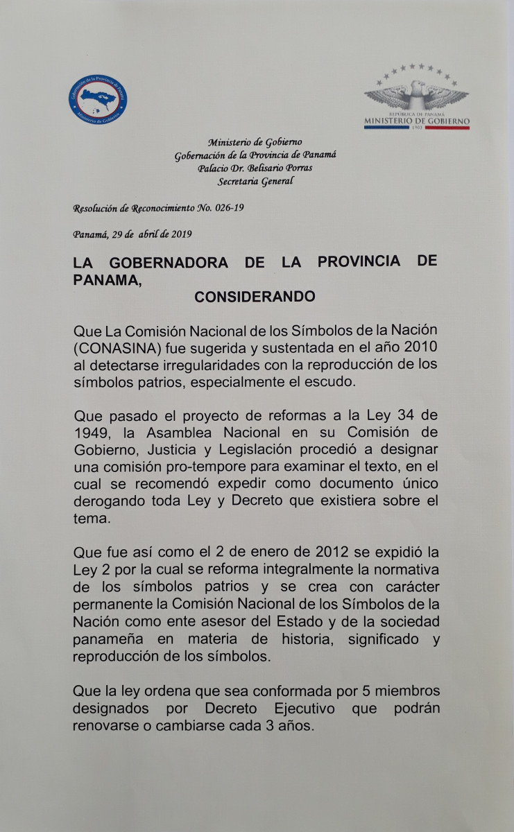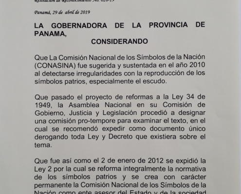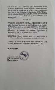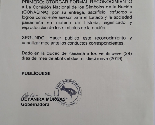 El 29 de abril 2019, la Gobernación de la Provincia de Panamá confirió a la Comisión el Pergamino al Mérito, acto en el cual su Director, Vladimir Berrío-Lemm, compartió las palabras de fondo sobre Victoriano Lorenzo en tanto que el Ing. Irvin Halman Brid y el Profesor Rommel Escarreola Palacios recibieron el pergamino.