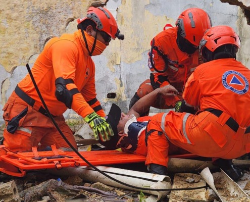 Además se evaluó la Intervención de la unidad canina, la estabilización de las víctimas y técnicas para el apuntalamiento, la perforación, corte, entre otros.