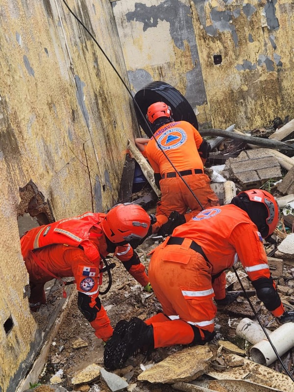 Panamá, 20 de agosto de 2024. Un equipo de unos 25 rescatistas especializados del Sistema Nacional de Protección Civil (Sinaproc), participan del simulacro de estructuras colapsadas, realizado este martes en la ciudad de Colón.