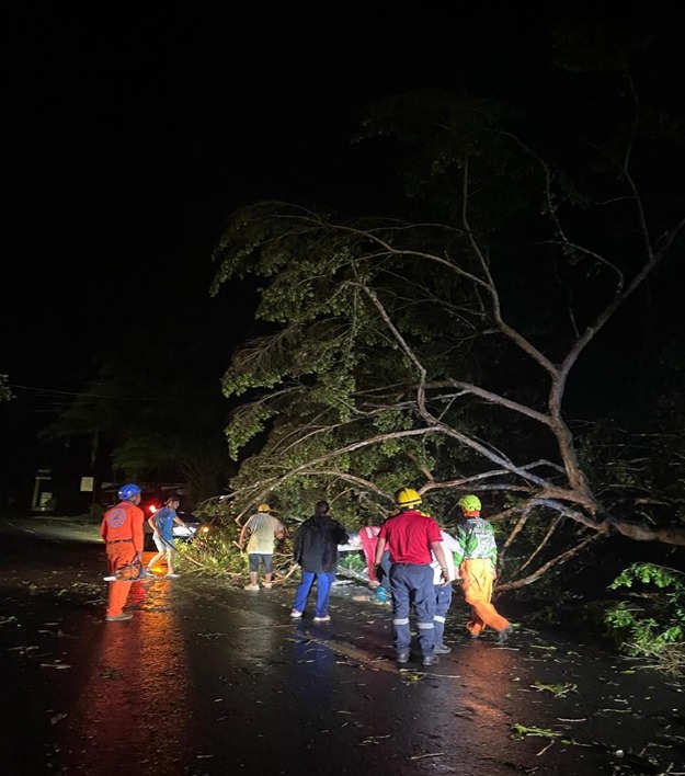 En el corregimiento de Dolega, Potrerillos, se reportaron varios árboles caídos sobre la vía. Personal de SINAPROC, en conjunto con el Benemérito Cuerpo de Bomberos y el Municipio de Dolega, culminó con el corte y remoción de tres árboles que obstruían el paso. No se registraron heridos.