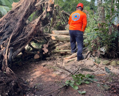 En conjunto con miembros de la comunidad, Sinaproc, realizó labores de corte y remoción de tres árboles caídos sobre viviendas en el corregimiento de San Andrés, distrito de Bugaba. El incidente afectó parcialmente los techos de las viviendas, sin causar daños a los enseres de los residentes.