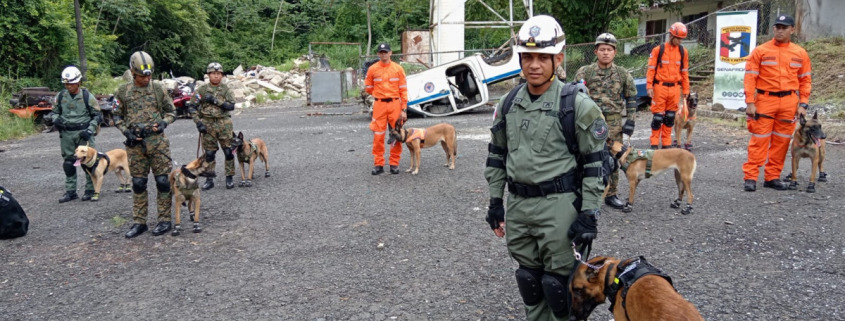Panamá, 20 de julio de 2023. Más de 15 binomios hombre-perro recibieron sus certificaciones, que los acredita como Guías Caninos de Búsqueda, Rescate y en Estructuras Colapsadas de la Fuerza de Tarea Conjunta. Dicha unidad ha sido conformada por el Sistema Nacional de Protección Civil (SINAPROC), como parte del fortalecimiento de capacidades para la atención de las emergencias y riesgos de desastres a nivel nacional.