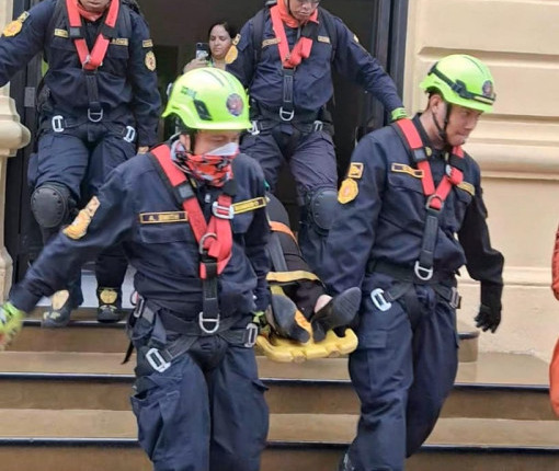 Para el capitán Ramsés Polonia del Cuerpo de Bomberos de Plaza Amador, indicó que esto es parte de un ejercicio en la que se dio un reporte de una llamada desde el Mingob y se les comunicó que había un incendio con una posible víctima en el segundo piso que estaba inconsciente, pero con sus signos vitales, por lo que se procedió acostarla en una tabla rígida y llevada hacia los paramédicos para que recibiera atención.