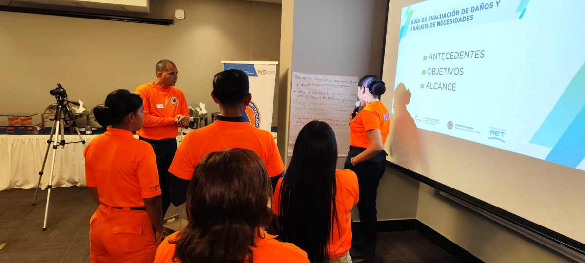 Panamá, 23 de marzo de 2023. Con el propósito de identificar las situaciones en las que se debe utilizar la Guía de Implementación de Procesos para la Evaluación de Daños y Análisis de Necesidades para familias y socializar su uso en caso de emergencias se inauguró un taller práctico dirigido a los colaboradores del Sistema Nacional de Protección Civil (SINAPROC).