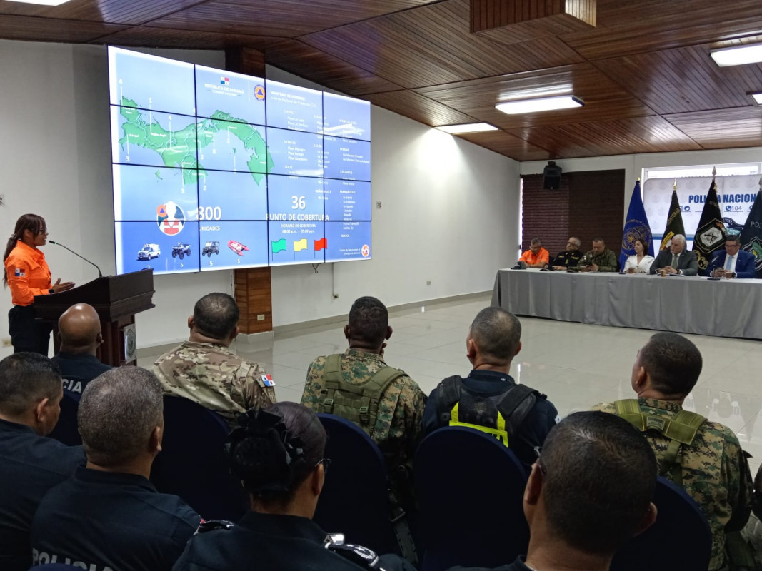 Panamá, 6 de abril de 2023. El Sistema Nacional de un Protección Civil (SINAPROC) participará del operativo de Semana Santa, junto a las demás instituciones de seguridad y emergencias que forman parte de la Fuerza de Tarea Conjunta, dando cobertura a 36 puntos con un pie de fuerza de alrededor de unas 800 personas entre funcionarios y voluntarios.