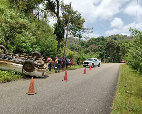Este sábado en el corregimiento de María Chiquita, distrito de Portobelo, los equipos de Respuesta del Sinaproc, brindaron los primeros auxilios a tres personas que resultaron con lesiones menores, durante un accidente automovilístico.