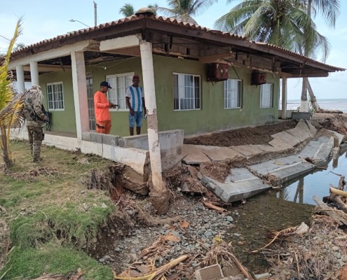 7Panamá, 07 de abril de 2024. Unas 10 viviendas en el corregimiento de Miramar, distrito Santa Isabel de la provincia de Colón, resultaron afectadas por las lluvias del sábado en la madrugada tras la evaluación de análisis de necesidades realizado por el Centro de Operaciones de Emergencias Nacional (COEN) del Sistema Nacional de Protección Civil (Sinaproc).
