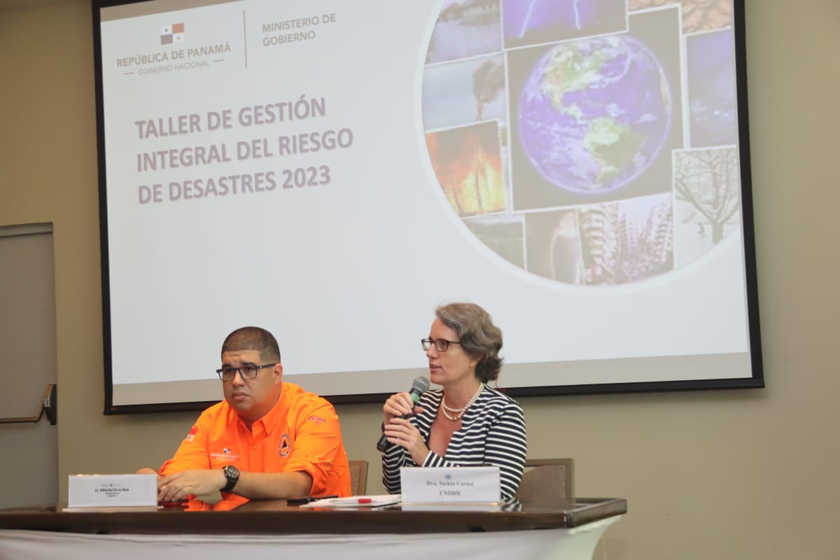 El taller fue inaugurado por el director general del SINAPROC, Adherbal De La Rosa y por Saskia Carusi, Jefa Adjunta de la Oficina Regional de las Américas y el Caribe para la Reducción de Riesgo de Desastres (UNDRR).