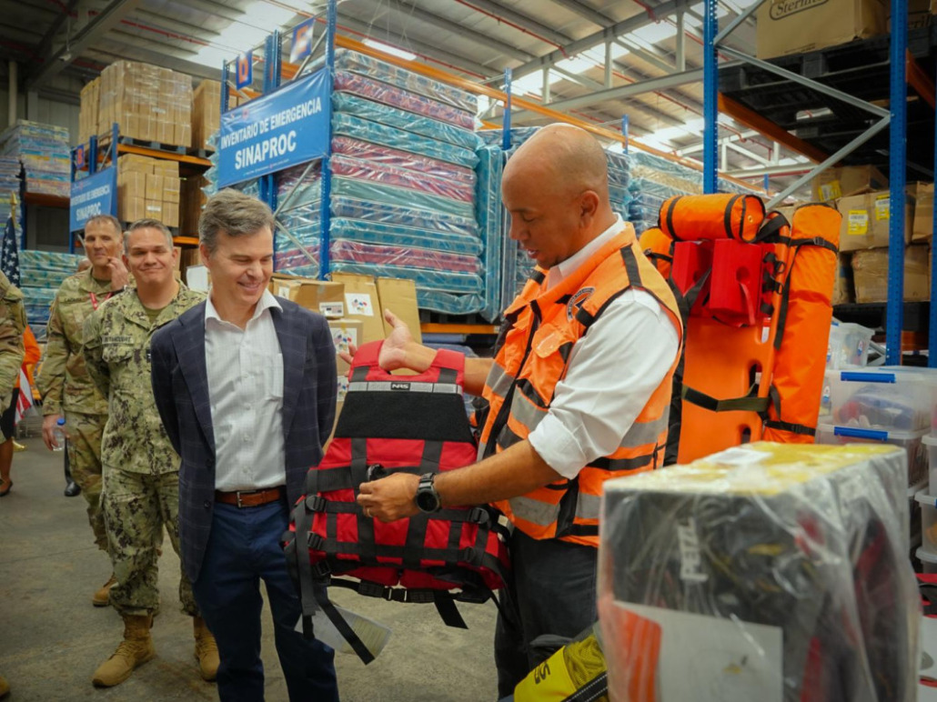“Nuestro aporte permitirá al Sinaproc reponer parte del inventario usado para atender a la población durante las lluvias de noviembre del año pasado y los equipará con lo que necesiten para salvar vidas en futuras situaciones de emergencias”, dijo durante la ceremonia el jefe de la misión diplomática de Estados Unidos en Panamá, John Barrett.