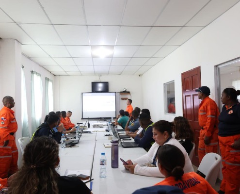 Esta capacitación dictada por el Comando Sur a los enlaces operativos del Centro de Operaciones de Emergencias del Sistema Nacional de Protección Civil (Sinaproc) en la provincia de Colón, cuenta con la participación de voluntarios e instructores de la Oficina de Cooperación Pública del Comando Sur.