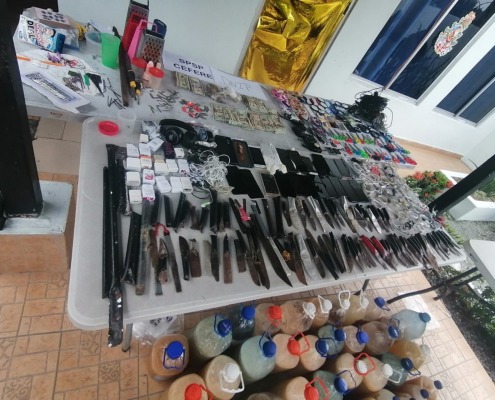 Panamá, 11 de enero de 2024. – Durante el 2023, la Dirección General del Sistema Penitenciario (DGSP), en conjunto con la Policía Nacional, decomisó en los centros penitenciarios un total de 150 armas de fuego, 2 mil 834 municiones, 120 proveedores de arma de fuego, 5 mil 406 celulares y 7 mil 523 armas punzocortantes.