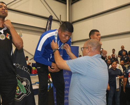 Panamá, 5 de septiembre de 2023. – En un emocionante y electrizante combate de boxeo, la custodia penitenciaria Marielis Corrales Carrillo ganó la medalla de oro en el VI Torneo Interfuerza de Boxeo Olímpico en la categoría 70 kg, actividad organizada por la Policía Nacional en el Centro de Combate de la Ciudad Deportiva Irving Saladino, donde también participaron distintos estamentos de seguridad.