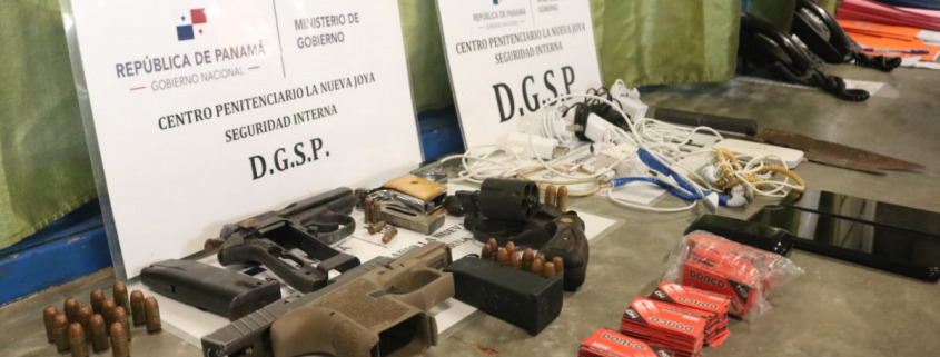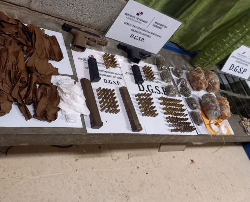 Panamá, 19 de julio de 2023. – Un total de 417 armas de fuego, 8 mil 406 municiones, 379 proveedores de armas de fuego, 14, mil 107 celulares decomisaron en requisas la Policía Nacional y el Departamento de Seguridad Penitenciaria del Sistema Penitenciario, según datos estadísticos de 48 meses de gestión de la actual administración.