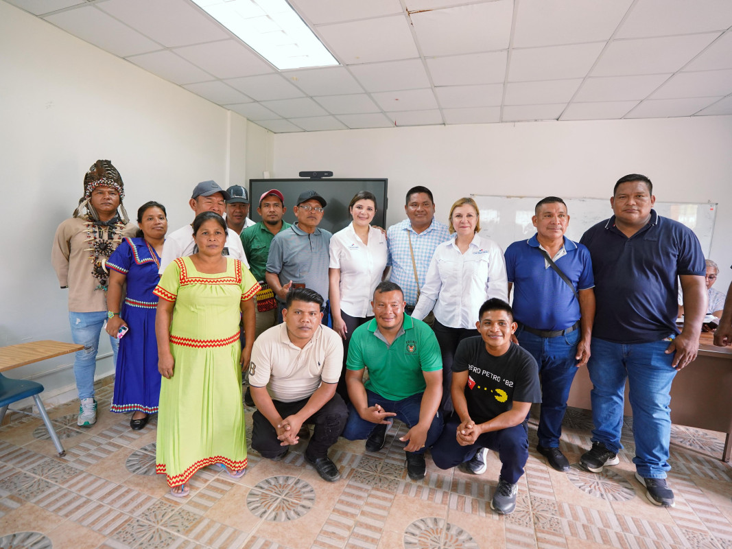 Punta Peña, Chiriquí Grande, 27 de agosto de 2025.- En su habitual gira por las diferentes provincias del país, la ministra de Gobierno, Dinoska Montalvo, junto a la ministra de Trabajo y Desarrollo Laboral, Jackeline Muñoz y el alcalde de Chiriquí Grande, Ariel Wright, realizó una importante reunión de acercamiento con líderes de los bastiones de Ño-Kribo, quienes solicitaron atención urgente en temas de salud, educación, red vial, infraestructura y plazas de empleos.