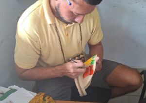 Coclé, 2 de octubre de 2025. – Un pequeño gesto puede transformarse en una gran motivación. Así lo vivió el privado de libertad Javier Morán Justiniani, del Centro Penitenciario de Aguadulce, quien pintó un sombrero decorado con el nombre de Coclé, la caña de azúcar y el tambor. Esa pieza artesanal ahora viajará por América acompañando al aventurero brasileño Pedro Biondo.