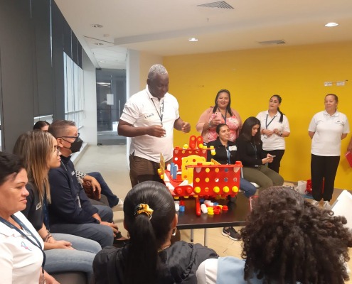La capacitación participativa incluyó dinámicas con legos de adultos, masillas, bailes, ejercicios de intercambio afectivo y destrezas, entre otros, donde los participantes se retroalimentaron según sus experiencias, lluvias de ideas y demás aspectos de una manera divertida.