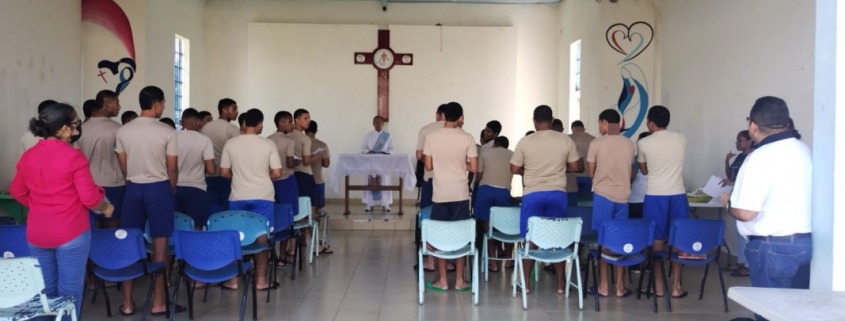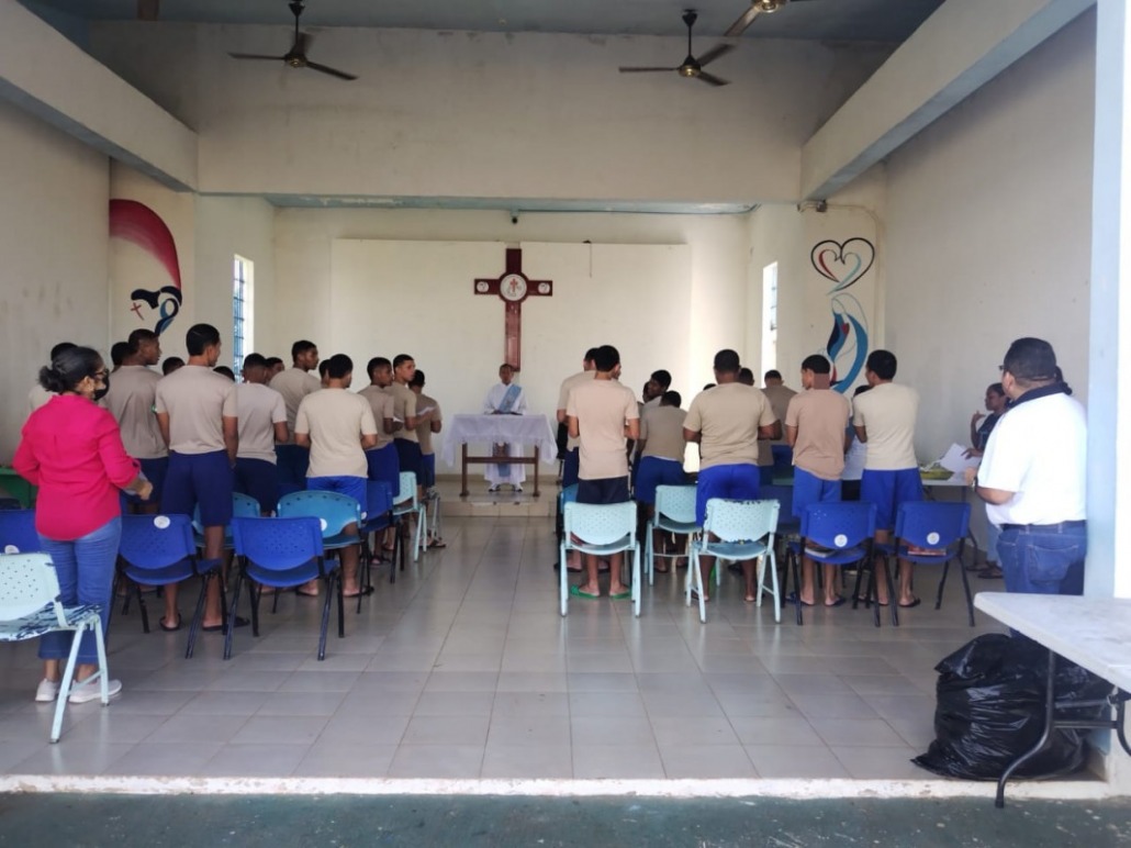 Panamá, 15 de enero de 2024.- Para fortalecer el renglón de Compañía Espiritual del Eje de Competencias Ciudadanas del Modelo de Intervención Integral, 32 adolescentes del Centro de Cumplimiento de Las Garzas participaron del programa Toma Mí Mano de la Comunidad Misionera de Jóvenes (CMJ-MENAHEM) del Centro San Juan Pablo II, con variadas actividades de índole religioso en un ambiente de amor fraternal.