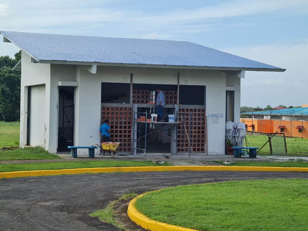 Panamá, 14 de enero de 2025.- Con el objetivo de mejorar la comodidad en las instalaciones de la capilla del Centro de Cumplimiento de Adolescentes de Las Garzas, del Instituto de Estudios Interdisciplinarios (IEI), se realiza una serie de trabajos que incluye cambiar la misma estructura de esta obra, actividad que cuenta con el apoyo de integrantes de la iglesia católica y evangélica de la República de Panamá.