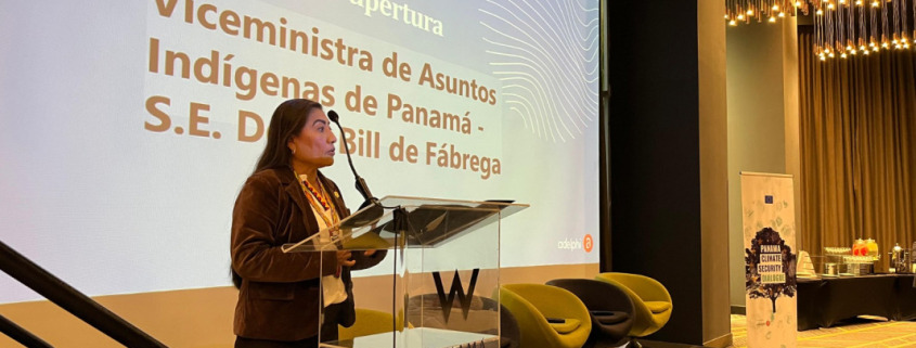 Panamá, 17 de septiembre de 2025.- Propiciar un diálogo multicultural y participativo que involucre a las autoridades tradicionales indígenas para la construcción de soluciones sostenibles para el medio ambiente, tomando en cuenta las prioridades, los valores y el conocimientos de las comunidades originarias, fue la propuesta de la viceministra de Asuntos Indígenas, Doris Bill Fábrega, durante el Diálogo sobre Seguridad Climática en Centroamérica.