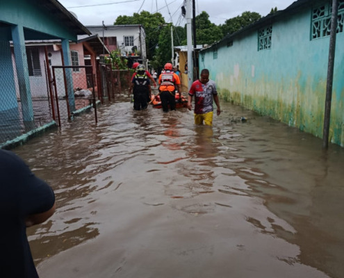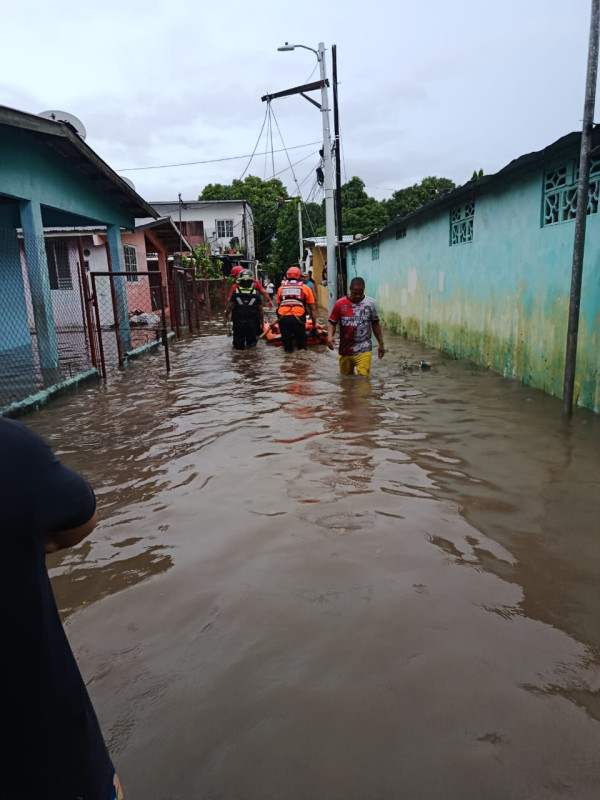 En la provincia de Chiriquí, en el barrio La Juventud en David se reportó la introducción de agua en una vivienda a causa de las fuertes lluvias. El personal de respuesta se encuentra en el sector evaluando la vivienda.
